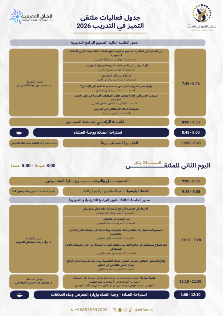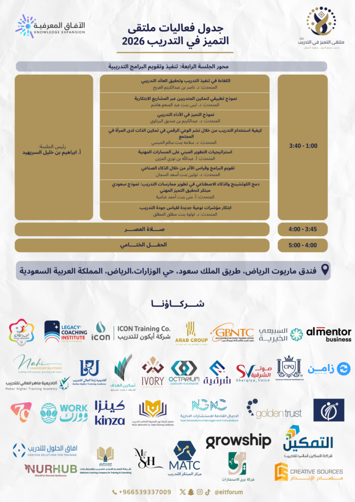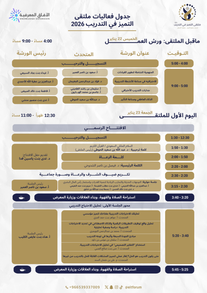 تحميل أجندة الملتقى من هنا أجندة ملتقى التميز في التدريب 2026